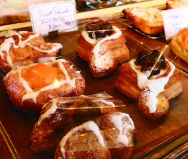 緑に囲まれた立地にあるその建物は、どこかヨーロッパを思わせる佇まい。一歩店内に入れば焼きあがったパンとレモングラスやジンジャーの香りが。吹き抜ける風と壁に飾られた絵画が、どこか異国の地に訪れたような気にさせるはず。おいしいパンとタイ料理、お飲物をお楽しみください。